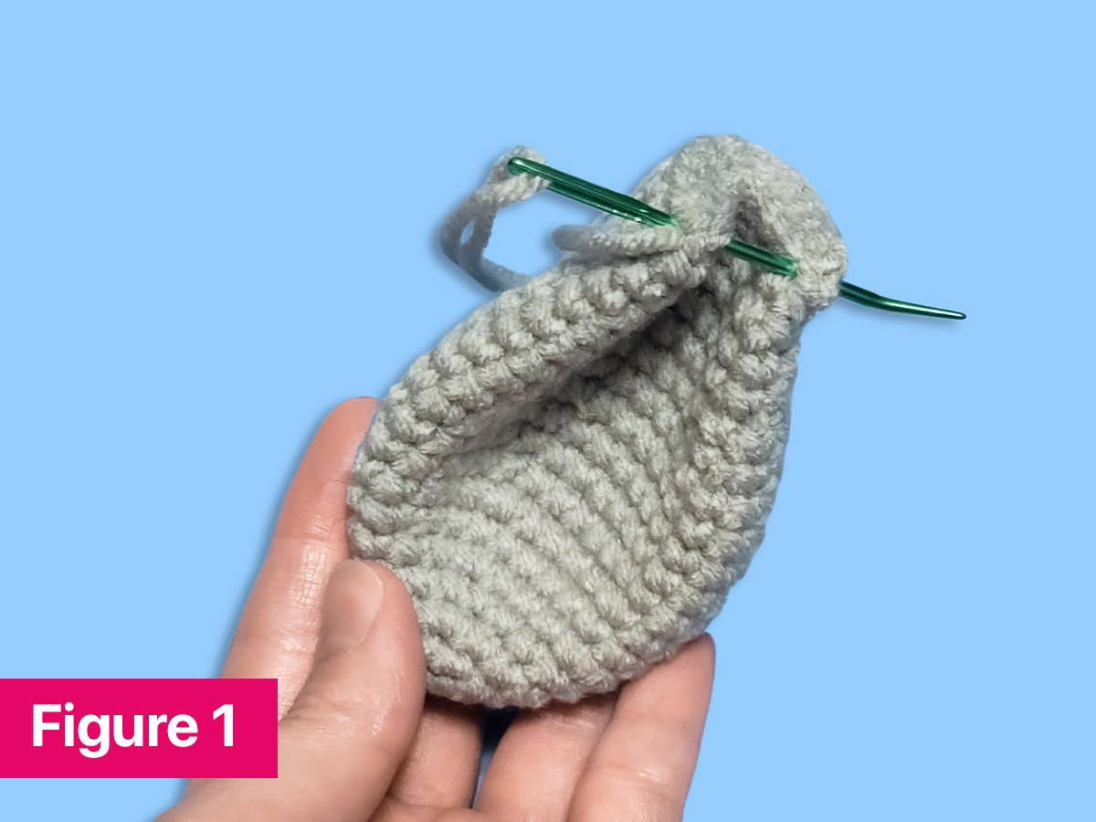 Fasten off, leaving a 24-inch (60cm) yarn tail. Do not stuff the ear. Press the final round together and Slip Stitch Closed.
